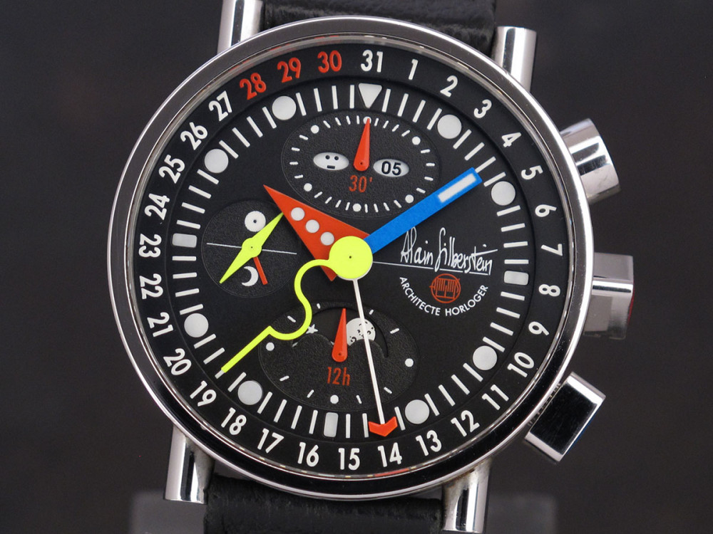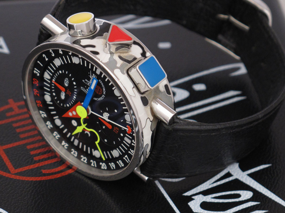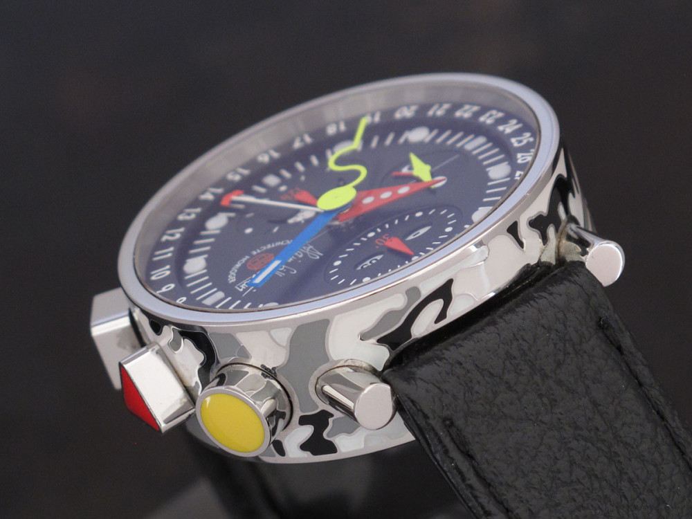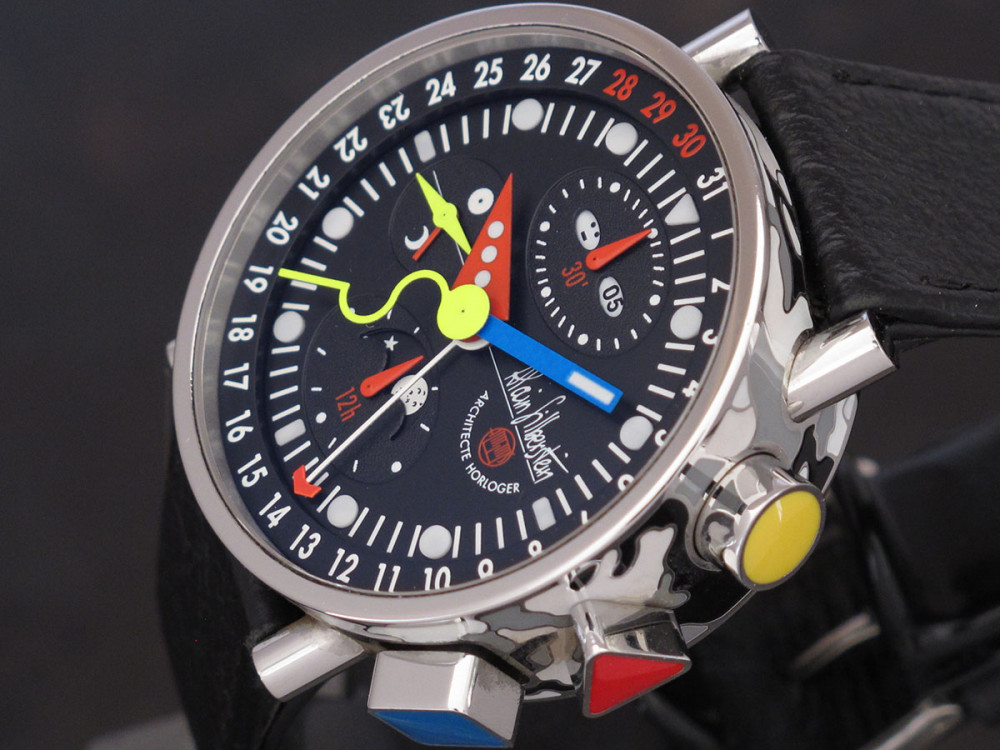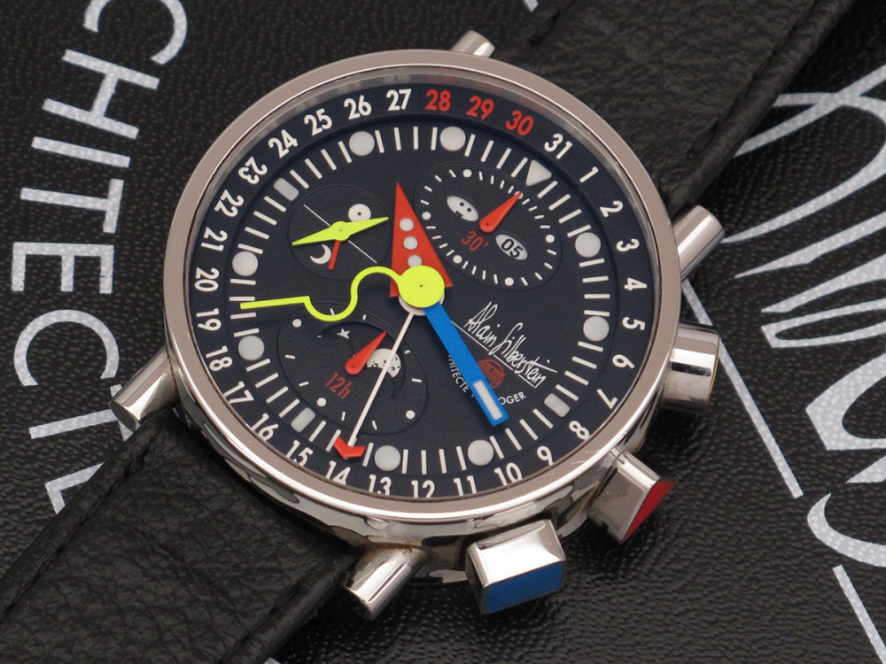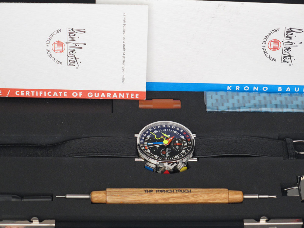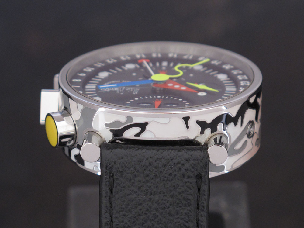 Very rare Alain Silberstein Krono Bauhaus 2 with stainless steel case 40mm with laqué cloisonné finition - Discontinued - Mint condition - Limited Edition - Chronograph Day Date Month night & day weekday emoji full set - Collector +++