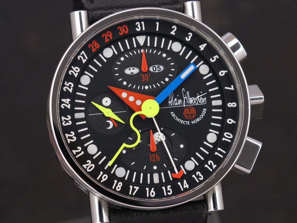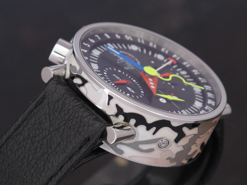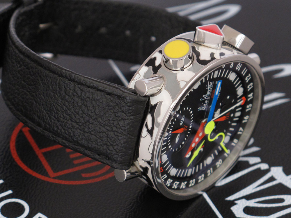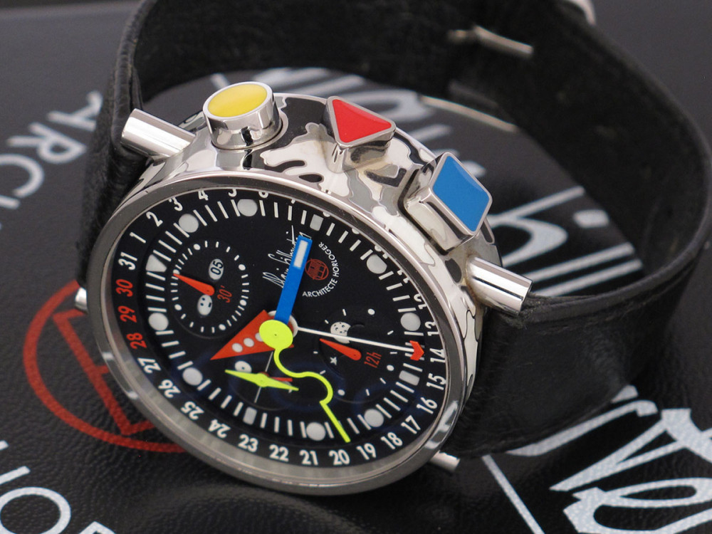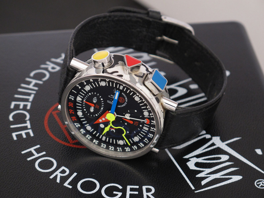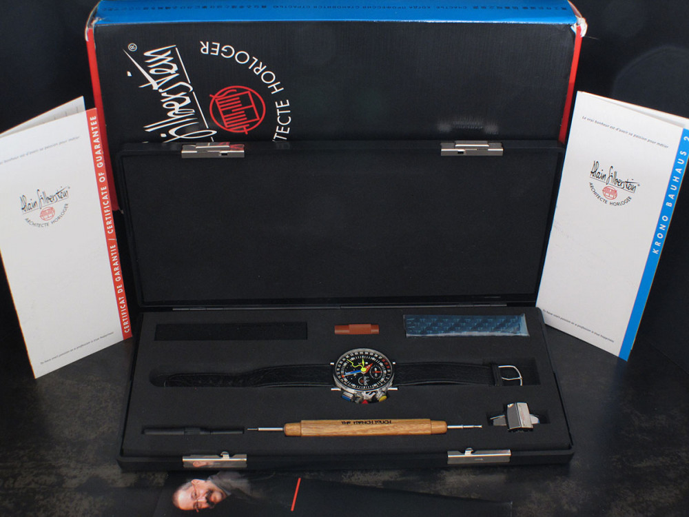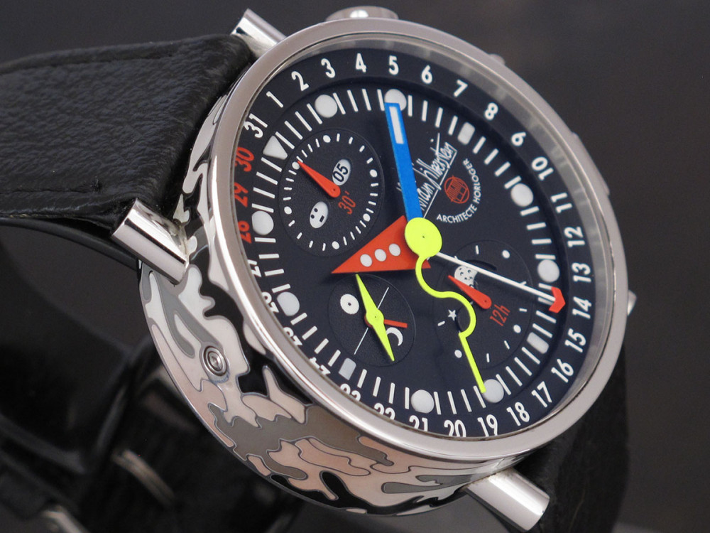 Very rare Alain Silberstein Krono Bauhaus 2 with stainless steel case 40mm with laqué cloisonné finition - Discontinued - Mint condition - Limited Edition - Chronograph Day Date Month night & day weekday emoji full set - Collector +++