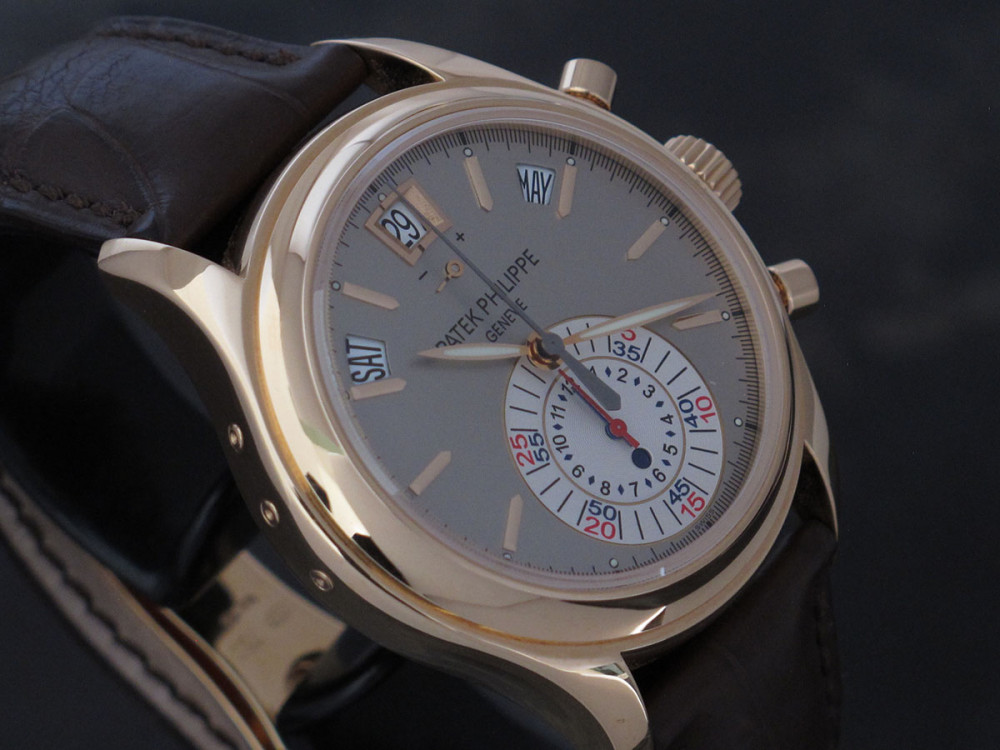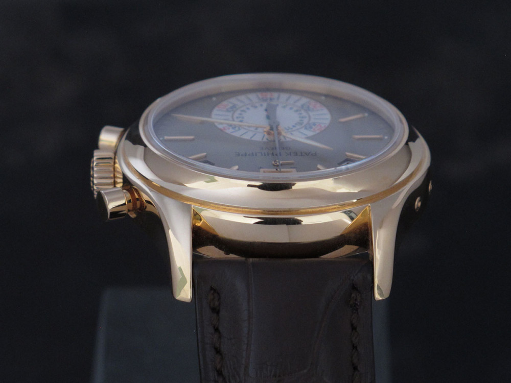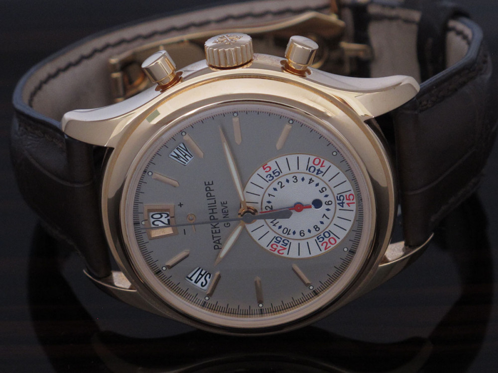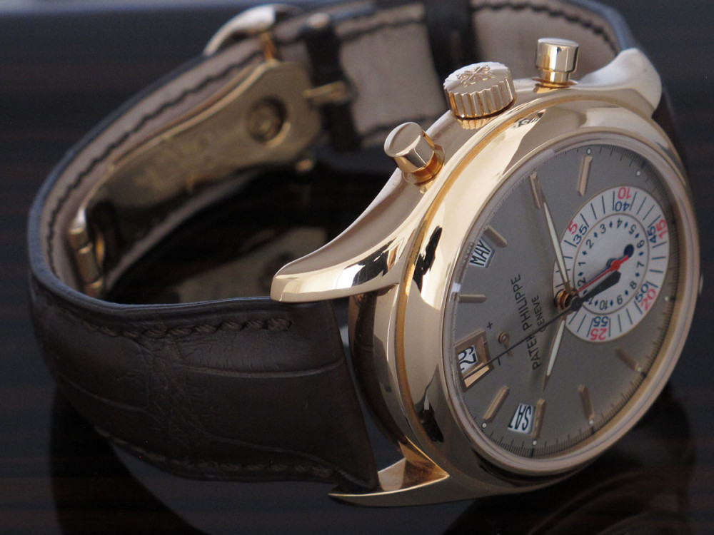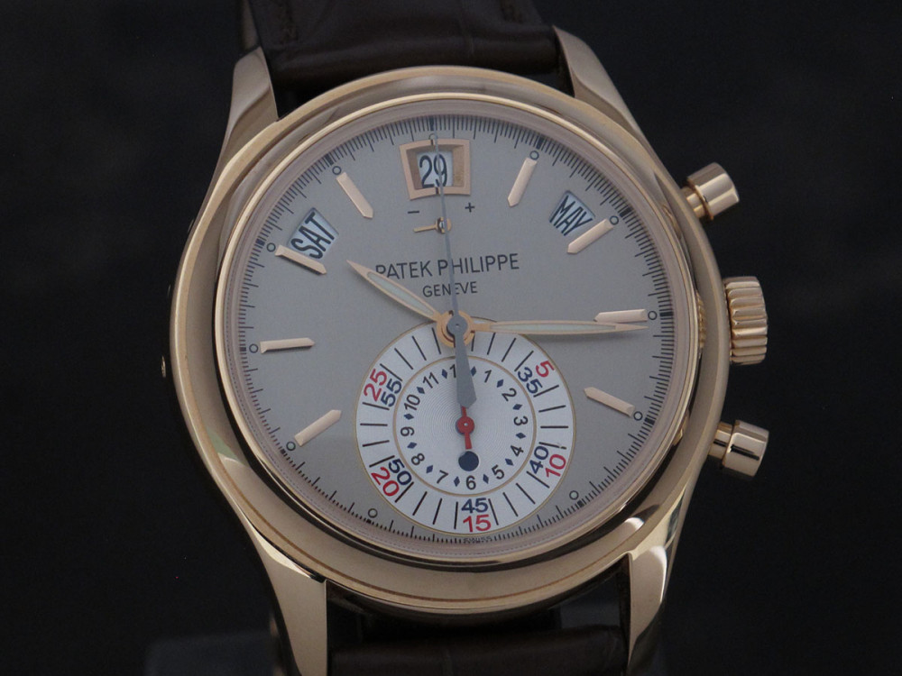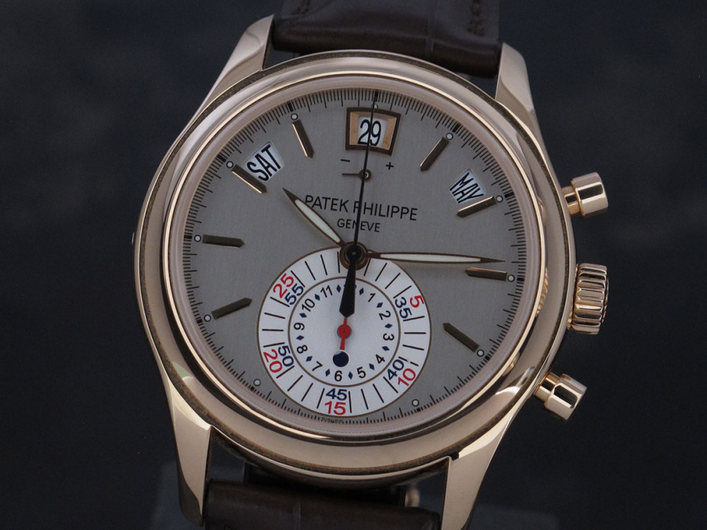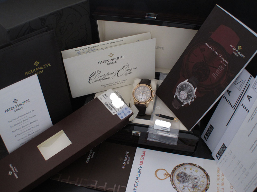 Very rare & discontinued model - The first PP Chronograph with in house movement - Rose gold case 40mm - Hallmark of Geneva - 1st series - PP Annual Calendar & Chronograph flyback movement - Power reserve - double sealed carboard box with original plastic packaging - Full Full set with matching number tag - Worn 3 times maximum - watch is in new condition - Collector's & investment reference -